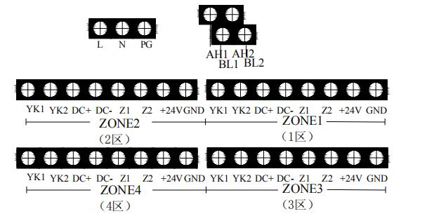 +24V、GND:各區的輔助電源輸出端子,為現場的系統設備如聲光警報器、氣體噴灑指示燈和輸出模塊供電。