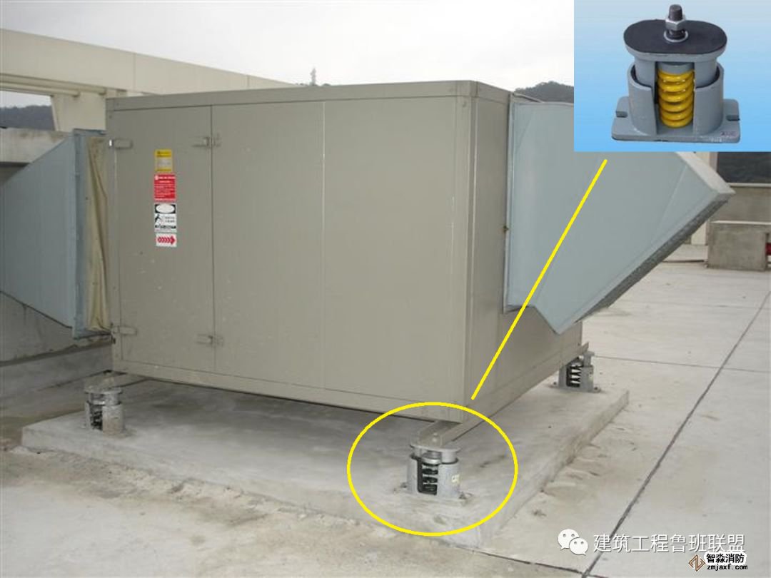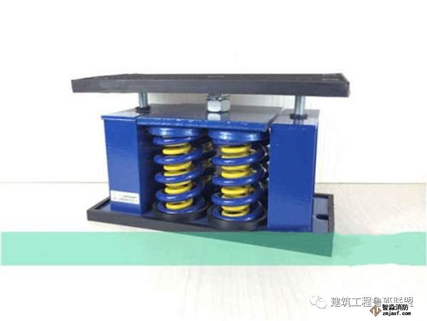 4. 空調機組、水泵落地式設備可直接采用橡膠隔振墊隔振或彈簧復合減震器。