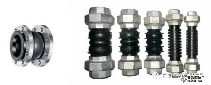 2. 水泵、冷水機組、風機盤管、空調機組等機電設備與水管之間用軟管連接,不使振動傳遞給管路。軟管有兩類:橡膠軟接管和不銹鋼波紋管。橡膠軟接管隔振減噪的效果很好,缺點是不能耐高溫和高壓,耐腐蝕性也差。在空調與采暖的水系統中多用橡膠接管。不銹鋼波紋管能耐高溫、高壓和耐腐蝕,但價格較貴,一般用于制冷劑管路的隔振。