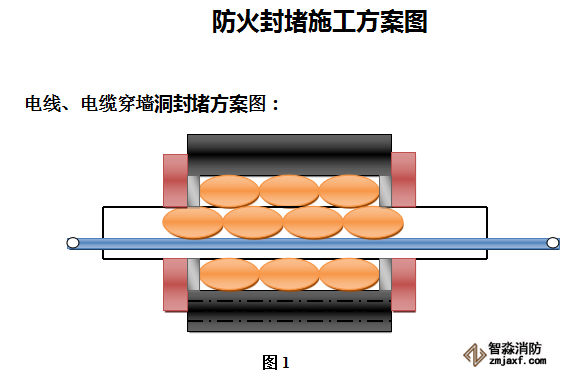 水平井的封堵一般可直接采用防火包將管道與穿越墻體處的縫隙填實,然后用無機堵料將管道穿越墻面的表層的縫隙抹平、堵實至不透光,最后用有機堵料在抹平發(fā)硬的無機堵料上做單邊為5-10厘米寬、厚2厘米的角線,要求表面平整光滑無裂縫不透光。