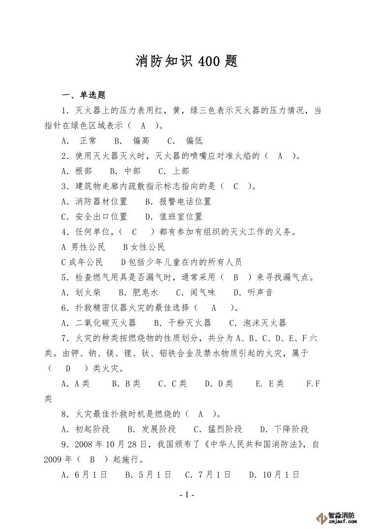 消防知識400題,用來考試還是競賽?由你定(值得收藏!)