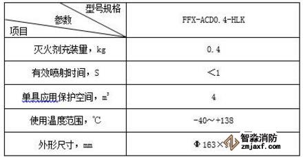 發動機艙用超細干粉自動滅火裝置主要技術參數