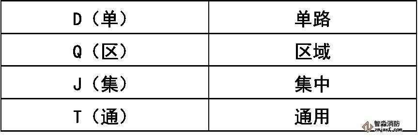 火災探測器分類代號: