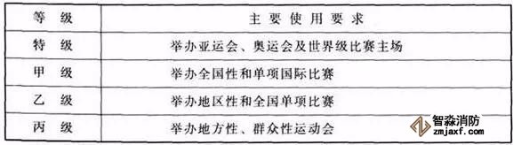 體育場(館)有其特定的功能需求,其建筑防火要求及消防設施的設置,應滿足《建筑設計防火規范》、《體育建筑設計規范》以及相應的系統類技術規范標準的要求。
