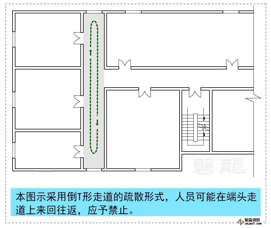 2、倒T形走道的疏散形式,應予禁止。