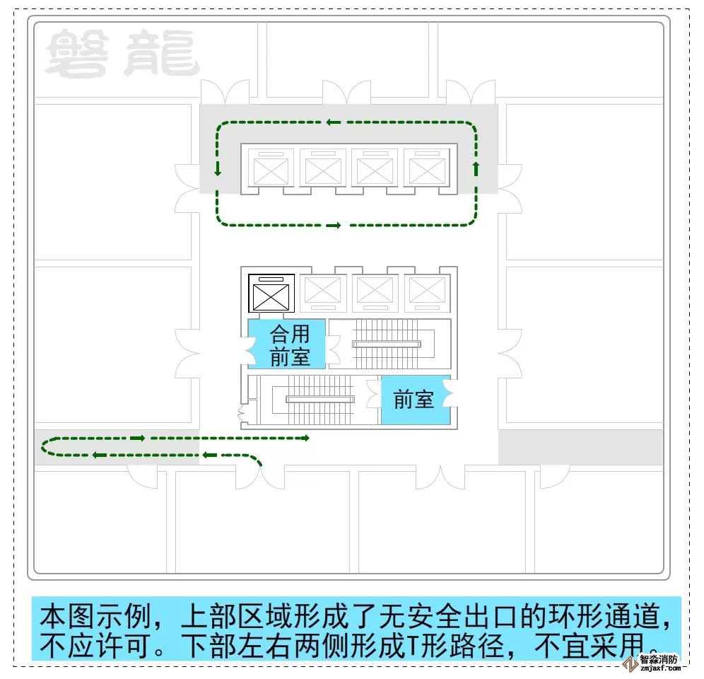 4、沒有安全出口的回形(環形)疏散路線,不應采用。
