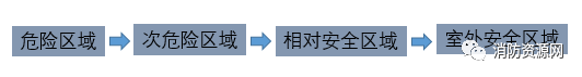 1、室內(nèi)房間屬于危險(xiǎn)區(qū)域,一旦發(fā)生火災(zāi),人員應(yīng)迅速疏散至相對安全的次危險(xiǎn)區(qū)域(疏散走道),通過疏散走道疏散至安全出口(圖示1)。