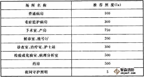 2、照明設計應采用高能效、高顯色性光源。醫療場所照明燈具的設置應避免對臥床患者產生眩光,宜采用漫反射型燈具。傳染病醫院照度宜符合下表1的要求。