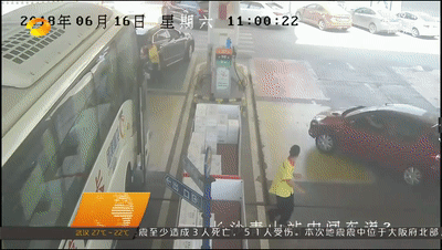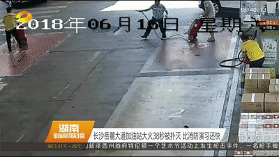 2018年6月16日11點,長沙岳麓大道加油站,一輛紅色小轎車加完油啟動時,因為剎車失控撞倒4號加油機,車輛隨即起火。此時,距著火點不到1米遠的地方,停著一輛載有47人的大巴,站內還有30多輛等待加油的小轎車,險情千鈞一發。