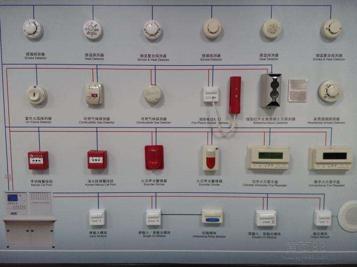 1.現(xiàn)場由感煙探測器、感溫探測器、火焰探測器、手動(dòng)報(bào)警按鈕及火災(zāi)顯示盤、聲光警報(bào)器等組成;監(jiān)控室由火災(zāi)報(bào)警控制器、消防控制室圖形顯示系統(tǒng)組成。