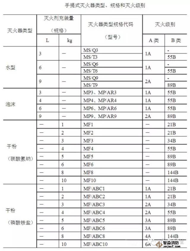 Q——滅火器配置場所的滅火級別,單位為A或B;
