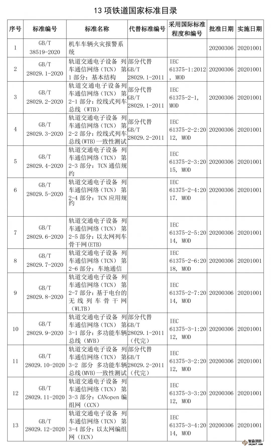 《機車車輛火災報警系統》等13項鐵道國家標準正式頒布