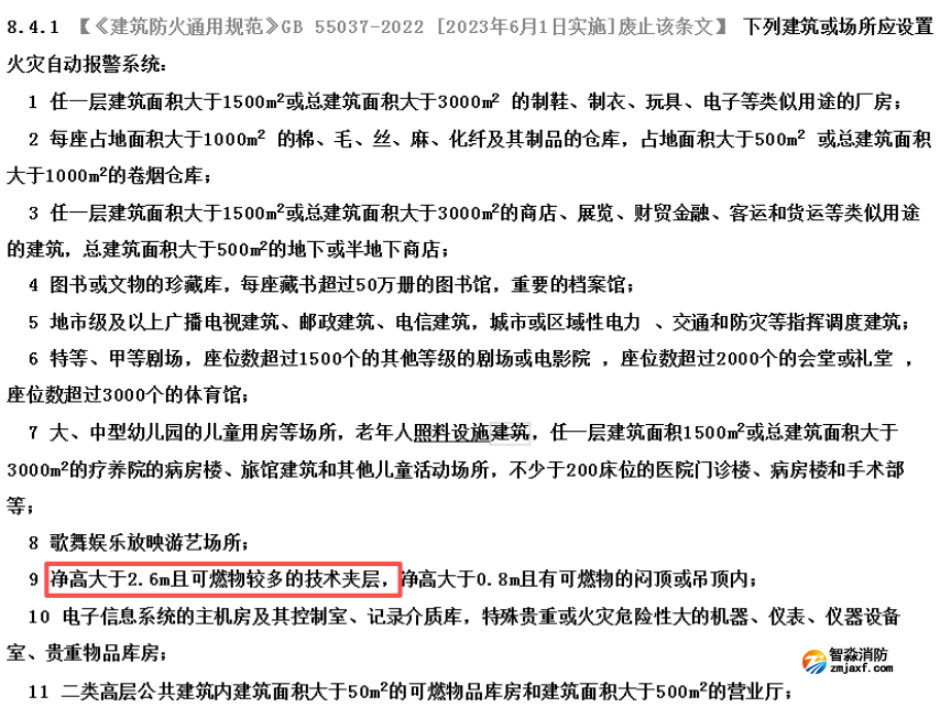雖然《建筑防火通用規(guī)范》GB 55037-2022在條文中未做明確規(guī)定,但《建筑設(shè)計防火規(guī)范》GB50016-2014(2018年版)的8.4.1條對技術(shù)夾層的火警設(shè)置的相關(guān)條文仍需要執(zhí)行,理由是強規(guī)頒布只廢除了GB50016-2014(2018年版)的8.4.1條的強制性屬性,8.4.1條內(nèi)容仍需要執(zhí)行。