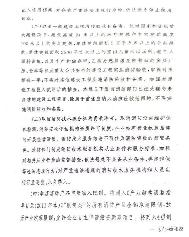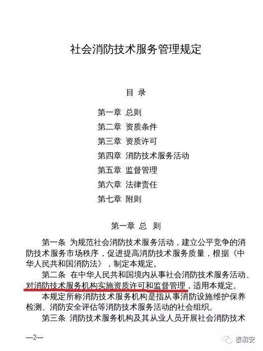 “ 取消消防設(shè)施維護保養(yǎng)檢測、消防安全評估機構(gòu)資質(zhì)許可制度,企業(yè)辦理營業(yè)執(zhí)照后即可開展經(jīng)營活動。”這是征求意見稿非常重要的一條。