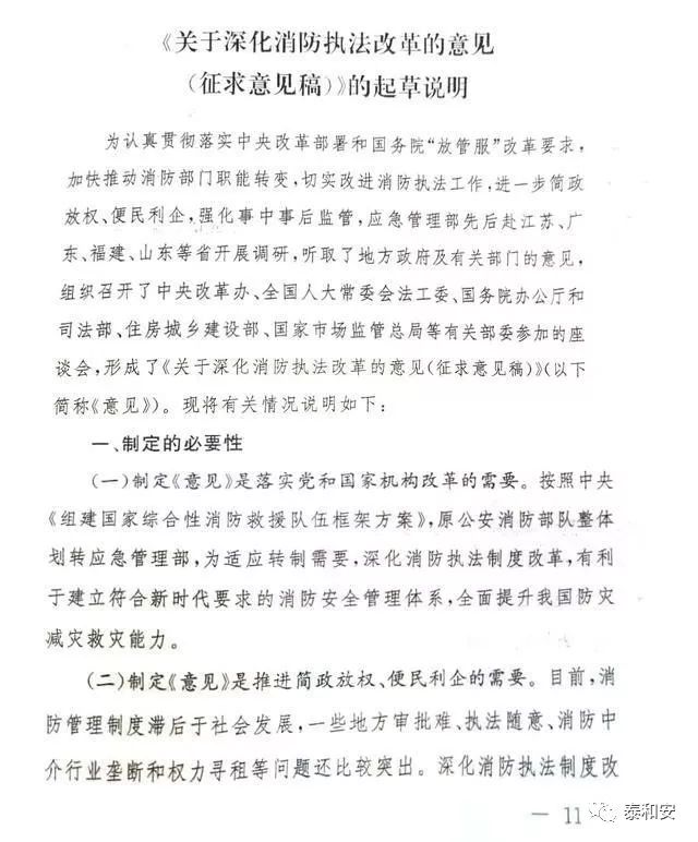 《關(guān)于深化消防執(zhí)法改革的意見(征求意見稿)》的兩頁紙引起行業(yè)極大關(guān)注!