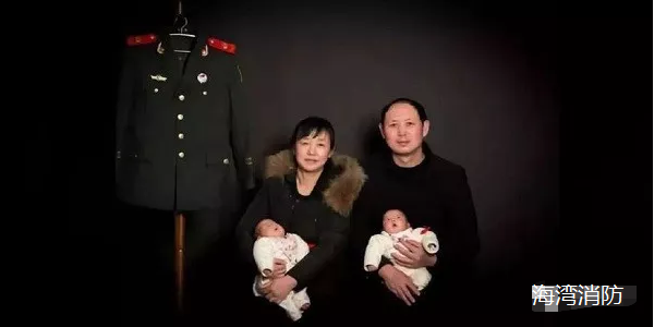 這是天津濱海爆炸事故救援中犧牲消防員龐題的父母和他們新出生的龍鳳胎思思和念念,希望他們不要忘記大哥。