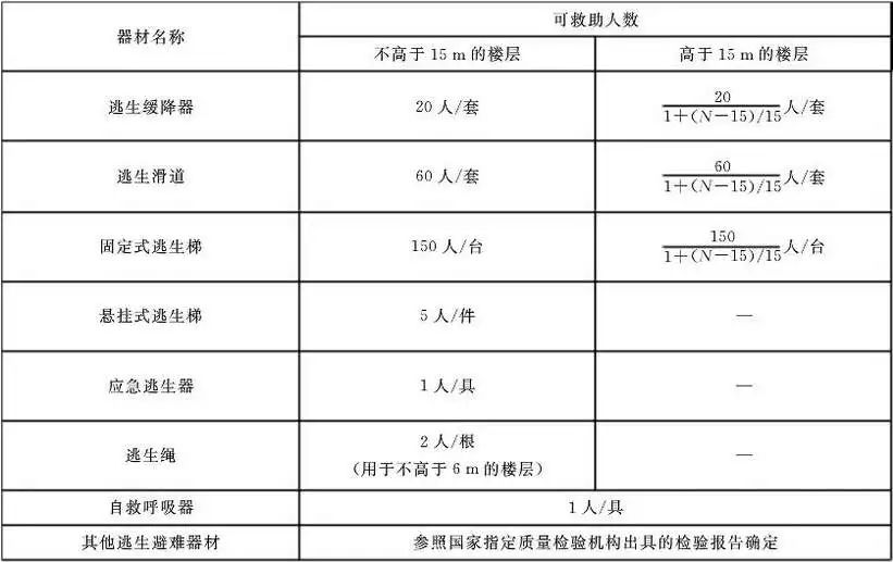 (1)逃生避難器材的配備數量應滿足器材可救助人數之和不小于逃生避難人數的要求。