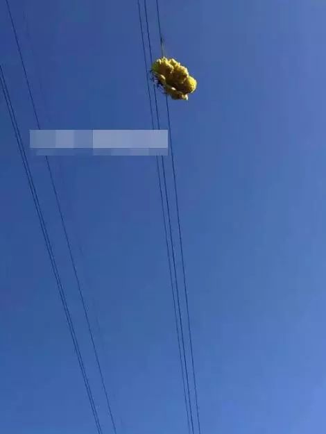 結果掛在高壓線上面。