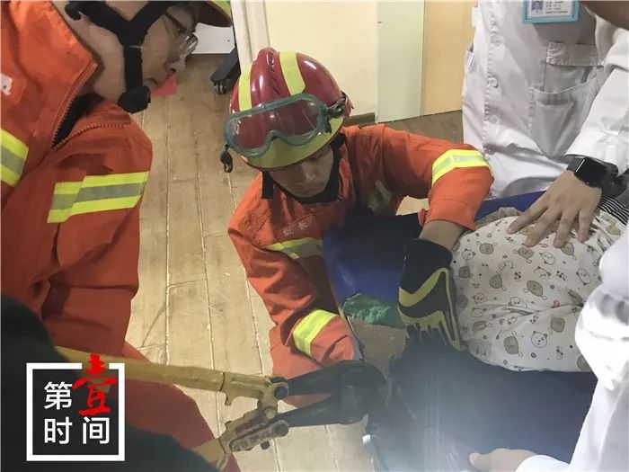 原來是醫院里面一個按摩床,小孩頭卡在床洞內....