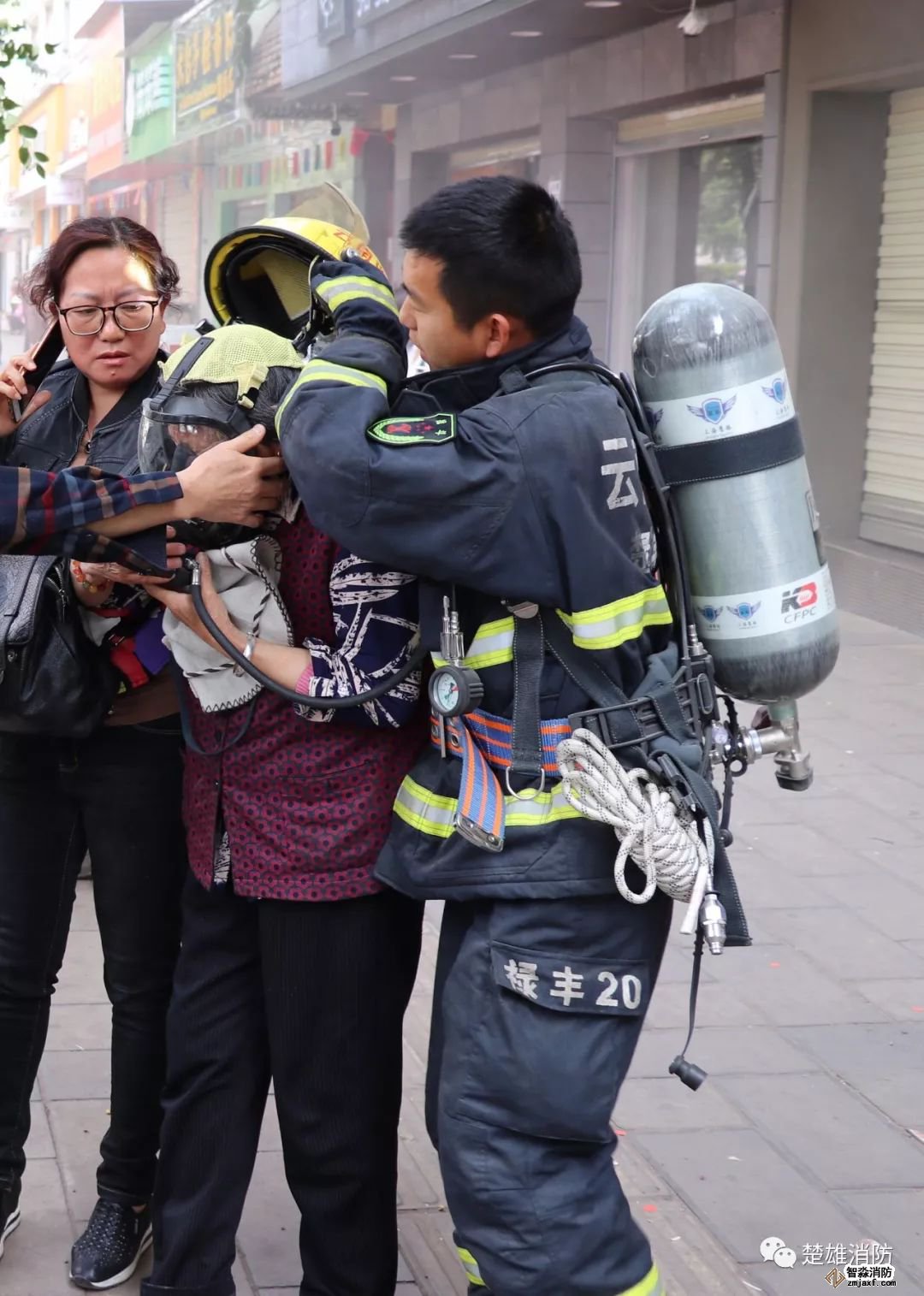 接救援過程中,由于被困群眾里有老年人,受到驚嚇后出現呼吸困難的癥狀,救援官兵見狀立刻取下自己的空呼面罩給老人佩戴,安撫老人情緒,保證老人意識清醒,并迅速將老人安全轉移。