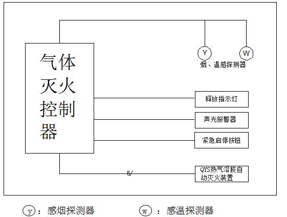 發生火災時,當一路探測器報警后,設在該防護區域內的警鈴動作;兩路探測器都報警后,設在該防護區域內外的蜂鳴器及閃燈動作;系統進入延時階段,控制盤完成相關設備的聯動控制。經過延時后,控制盤輸出24V直流信號電源啟動儲氣瓶組上的電磁閥,打開儲氣瓶組釋放滅火劑氣體,滅火劑沿噴射短管和噴頭輸送到防護區域滅火。如值班人員先于火災探測系統發現火情,當用手提式滅火器或其它移動式滅火設備無法撲滅火災時,可直接手動啟動來滅火。如發現是系統誤動作,或確有火災發生但僅使用手提式滅火器和其它移動式滅火設備即可撲滅火災,可按下設在防護區域門外的緊急止噴按鈕,可以使系統暫時停止釋放藥劑。如需繼續開啟氣體滅火系統,則只需松開緊急停止開關即可。
