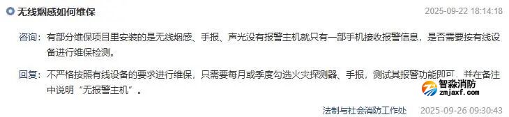 有部分維保項目里安裝的是無線煙感、手報、聲光沒有報警主機就只有一部手機接收報警信息,是否需要按有線設備進行維保檢測。